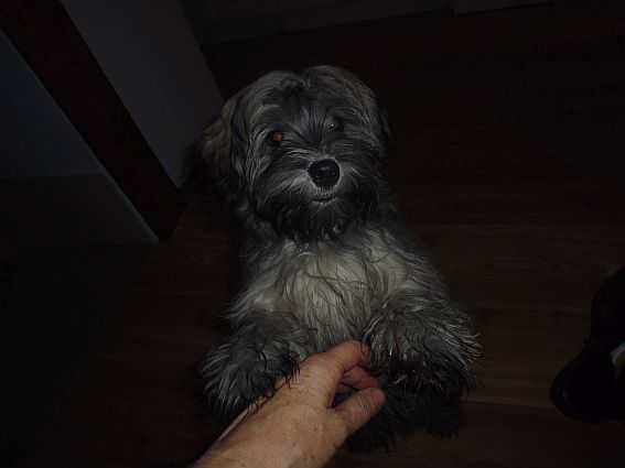 Jdeme dovnitř. Nechávám na stole zbytek pytlíčku pro Beníčka. Kostičky jsem koupila v létě, když byl nový. Pro štěňátka. Fotím ho. Je tak rychlý, že mám na obrázcích jen jeho šmouhy. Dávám scénu "pohyb". Konečně - je tam.