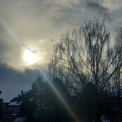 Druhé probuzení. Kočky vybíhají po snídani ven. Rychle své obřady, na kamna kašlu. Venku krásně mrzne.