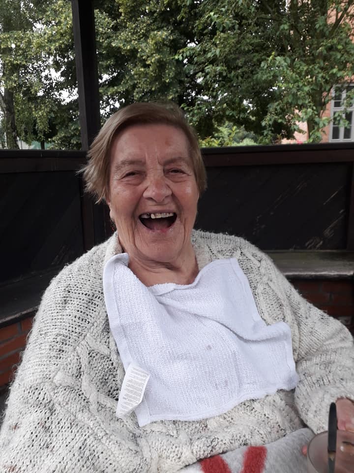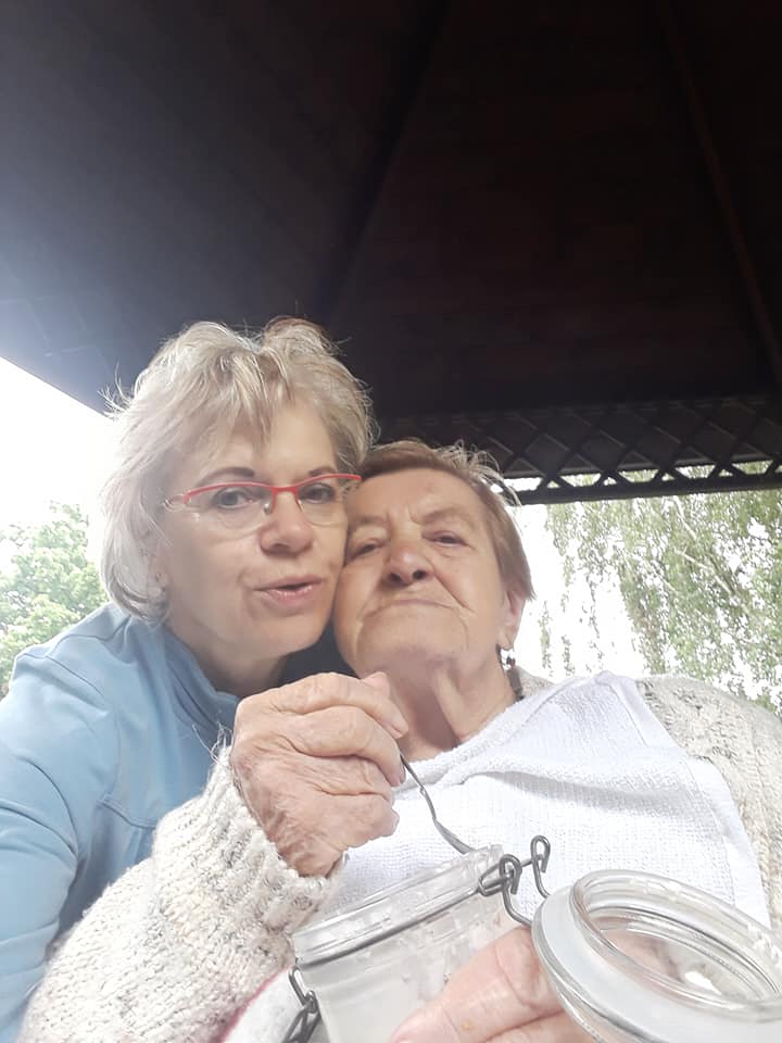 Maminka se opět spokojeně usmívá. Peťulka si ji dobírá. I mě. Vtipně glosuje. Mamka má klid ve tváři. Milý úsměv. Maminka... Mám ji. Není třeba měnit medikaci, Mengelko!! Krm bigfarmu, ale jinde!