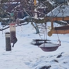 Jdu se převléknout… Z ložnice pozoruji krmítka. Na švestce se zdvihlo hejno ptáků. Stehlíček, snad tam byl i dlask, viděla-li jsem dobře? Úroda ptáčků! Běžím bosa do sněhu nasypat jim, aby měli dostatek. Ať přežijí ledovou noc.