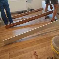 Za chvíli telefon. Pán od postele chce Petrouška. Všechny šroubky jsem dala do pytlíčku. Úchyty od zrcadla do druhého. Matláci jakési válečky pod deskou na ležení vysypali.