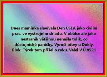 Vkládám dnešní otočeníčko, zamyšleníčko, počteníčko. Kontroluji statistiku. dnes poprvé 1490 čtenářů. Ale to je první výjimka. Jinak tři sta, osm set... Většinou o víkendu to vyšplhá. Děkuji. Za rok touhle dobou budu platit za doménu a ještě za něco. Asi Vám napíšu č. účtu, kam mi můžete naskládat na platbu. Děkuji předem. Hlavně se tam má prý napsat DAR.