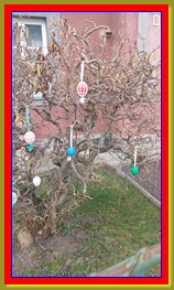 Moc krásná cesta. Lidi mají nazdobené zahrady vajíčky.