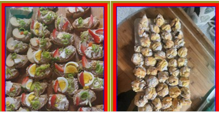 Poznámky dopsány. Odeslány. Na zítra peču bagety. Jen z žitného kvásku. Nedá mi to. Přidávám aspoň půlku kvasnic. Vyrábím pomazánku. Chlebíčky vyšly náramně. Zdobím ořechem. Plátkem jablíčka. Kouskem jahody. Kolečky pórku.