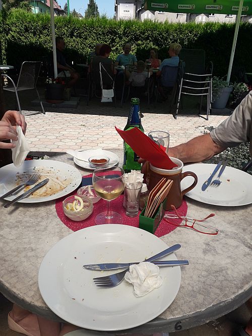 Příjemný personál. Obsluhuje nás první den ve službě budoucí studentka Gastronomické školy. (Včera jí skončila bezstarostnost. Po prázdninách se začne profesně vzdělávat. I naší malé vnučce včera skončila bezstarostnost. Po prázdninách začne její oblékání do společenského. Pokud rodiče nebudou hlídat, aby neziskovky nepřišly do školy vymývat mozky, ztratíme ji. Jako jsme nenápadně ztratili naše děti... Dobrovolně je necháváme vzdělávat nepřítelem. Systém. )