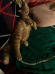 Jdeme odklopit schůdky. Zrzečka už čeká nahoře. Nebrečí. Čeká. Trpělivě. Neví, jak dolů. Lezu si pro ni. Tentokrát odchyt úspěšný. Pokládám ji na schůdky. Drápala by se zas nahoru. Beru ji na rameno.