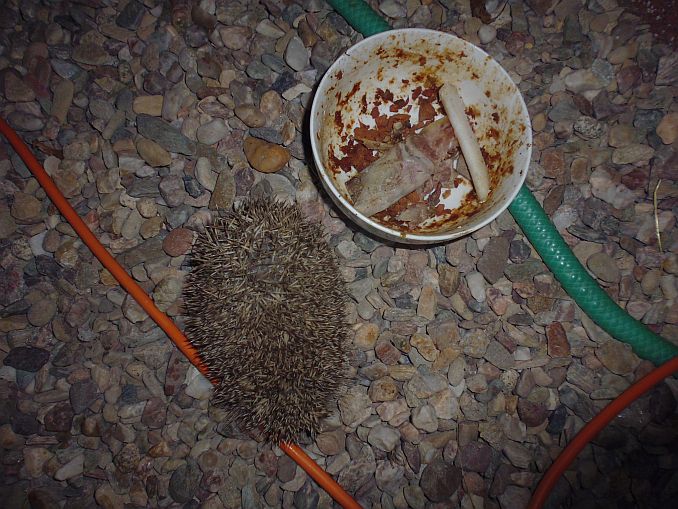 - Ukaž? Tenhle je malý. Ten je zezadu ze zahrady. Máme jich tu víc. K misce vpředu chodí takový velký. Nechej ho. Bojí se.